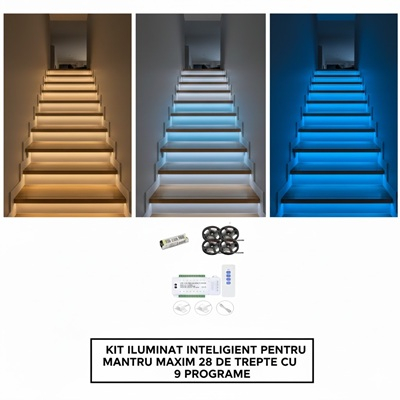 Kit iluminat inteligent 28 scari cu senzori si telecomanda